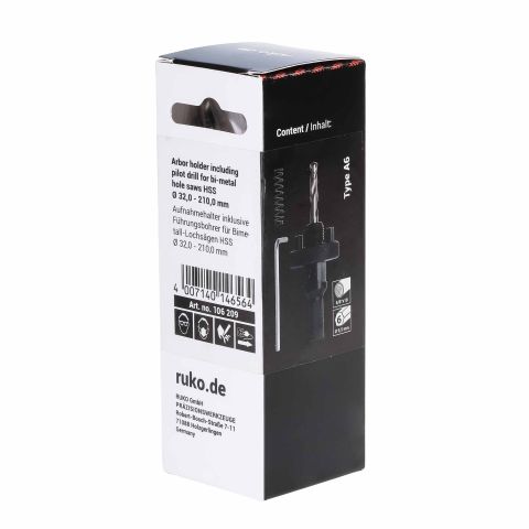 Переходник(хвостовик) для Bi-Metall коронок A6 32-210мм HSS HEX=9,5мм Ruko 106209