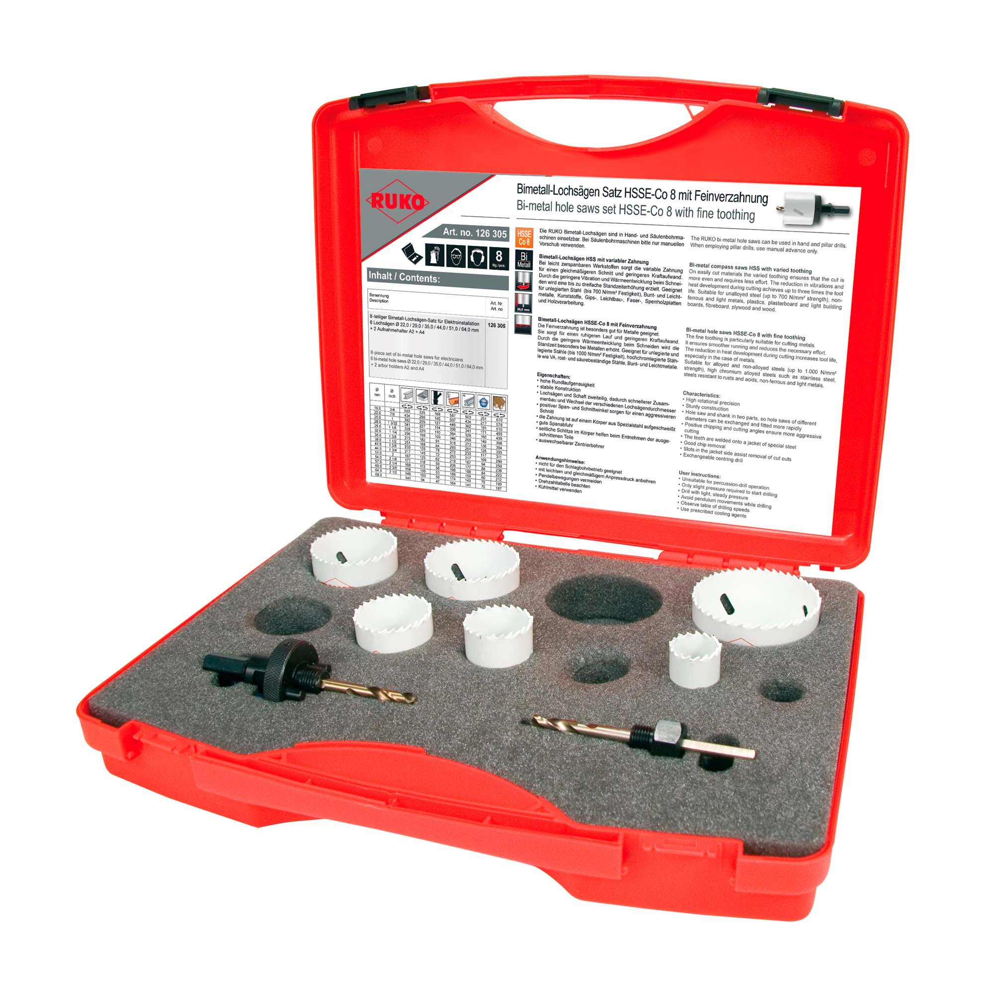 Набор коронок Bi-metall EK1 22-64мм HSSE-Co8 8пр Ruko 126305