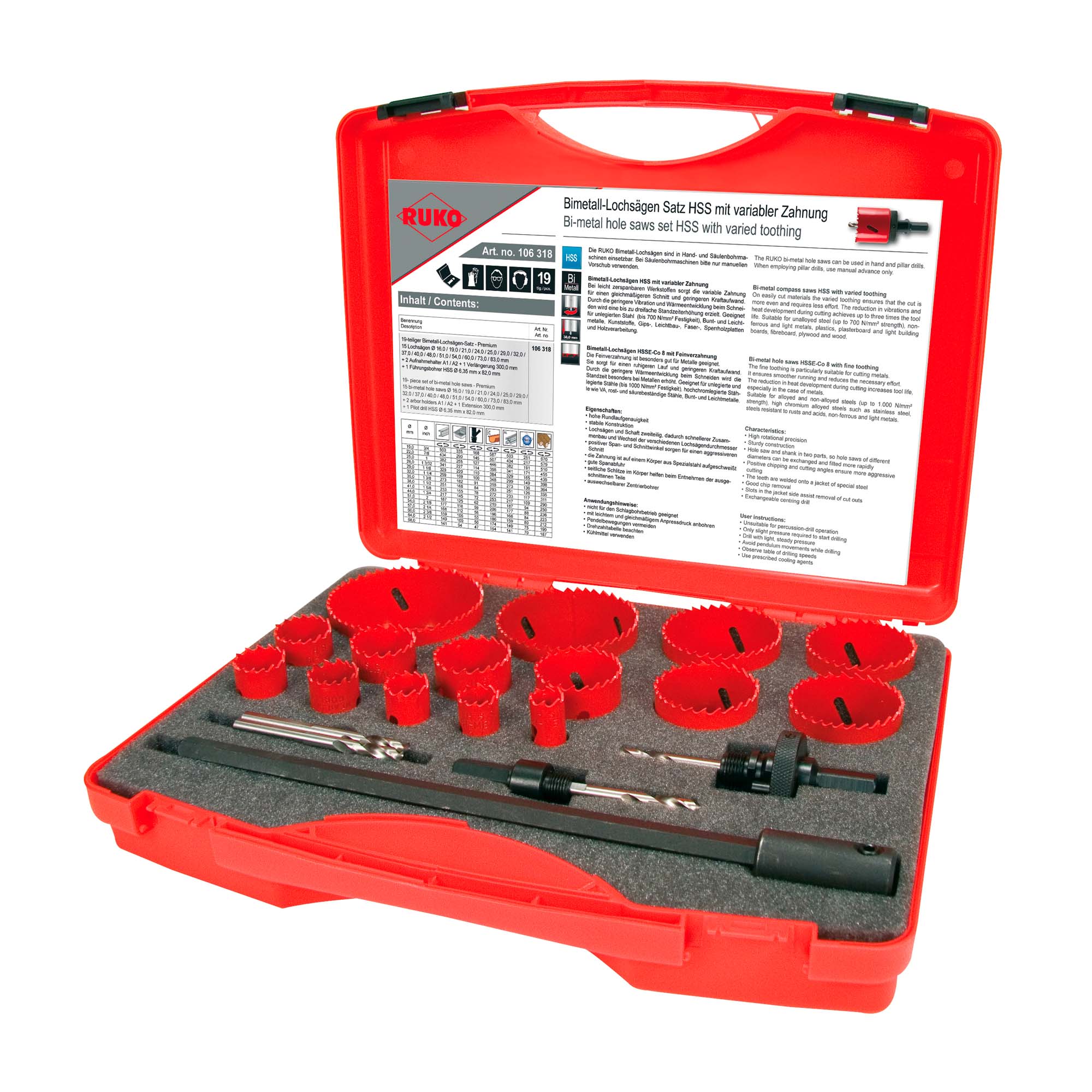 Набор коронок Bi-metall Premium 16-83мм HSS 19пр Ruko 106318