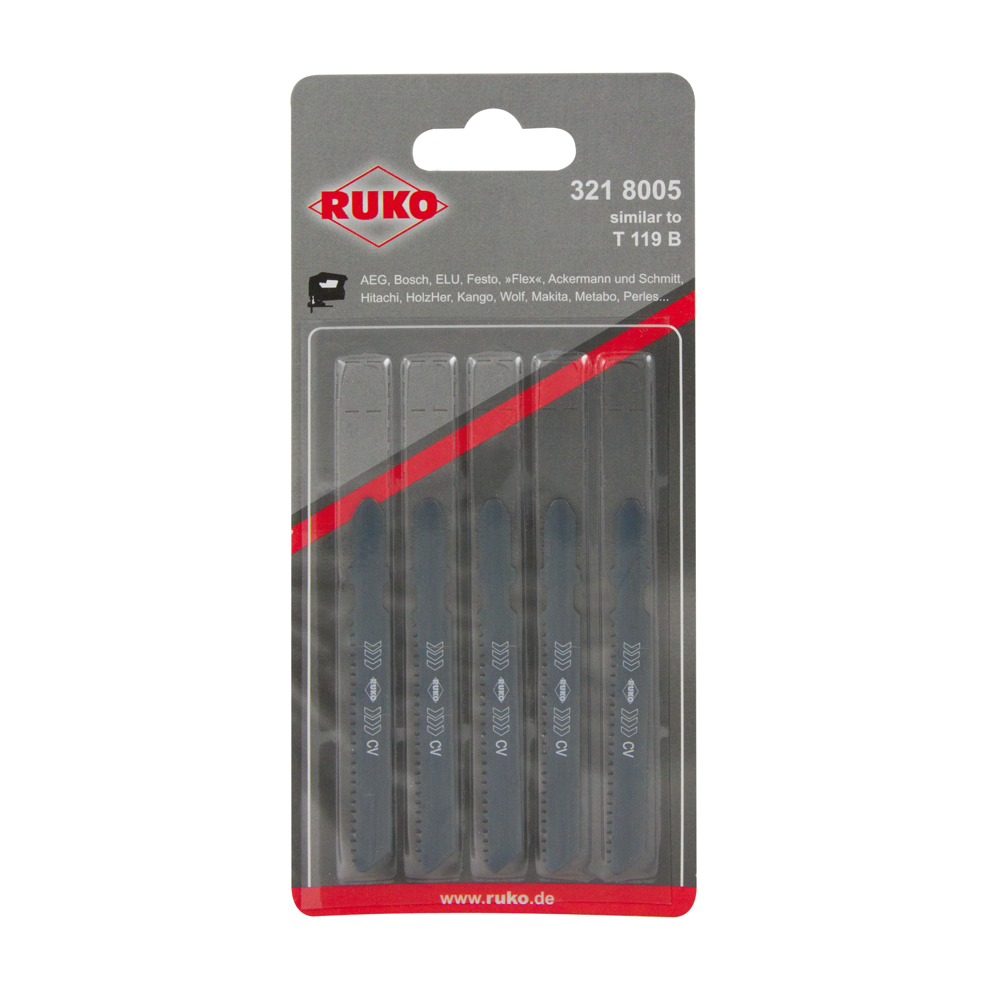 Пилка для лобзика T119B HCS 77мм 13Tpi 5шт Ruko 3218005