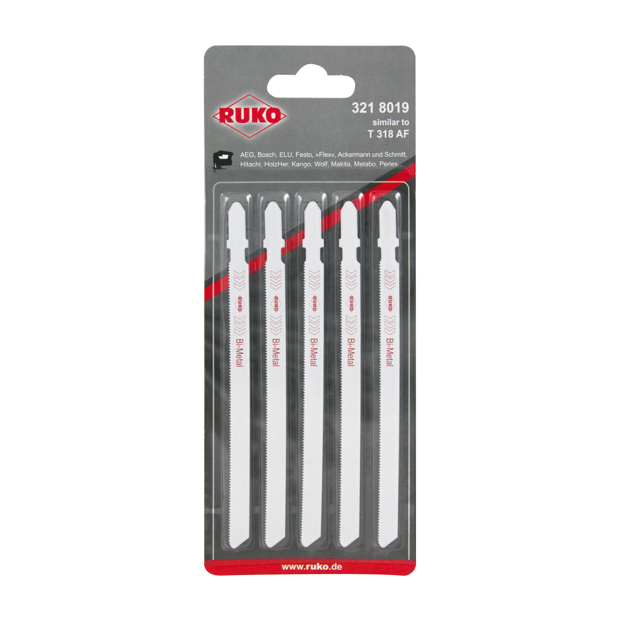 Пилка для лобзика T318AF BiMetall 132мм 23Tpi 5шт Ruko 3218019