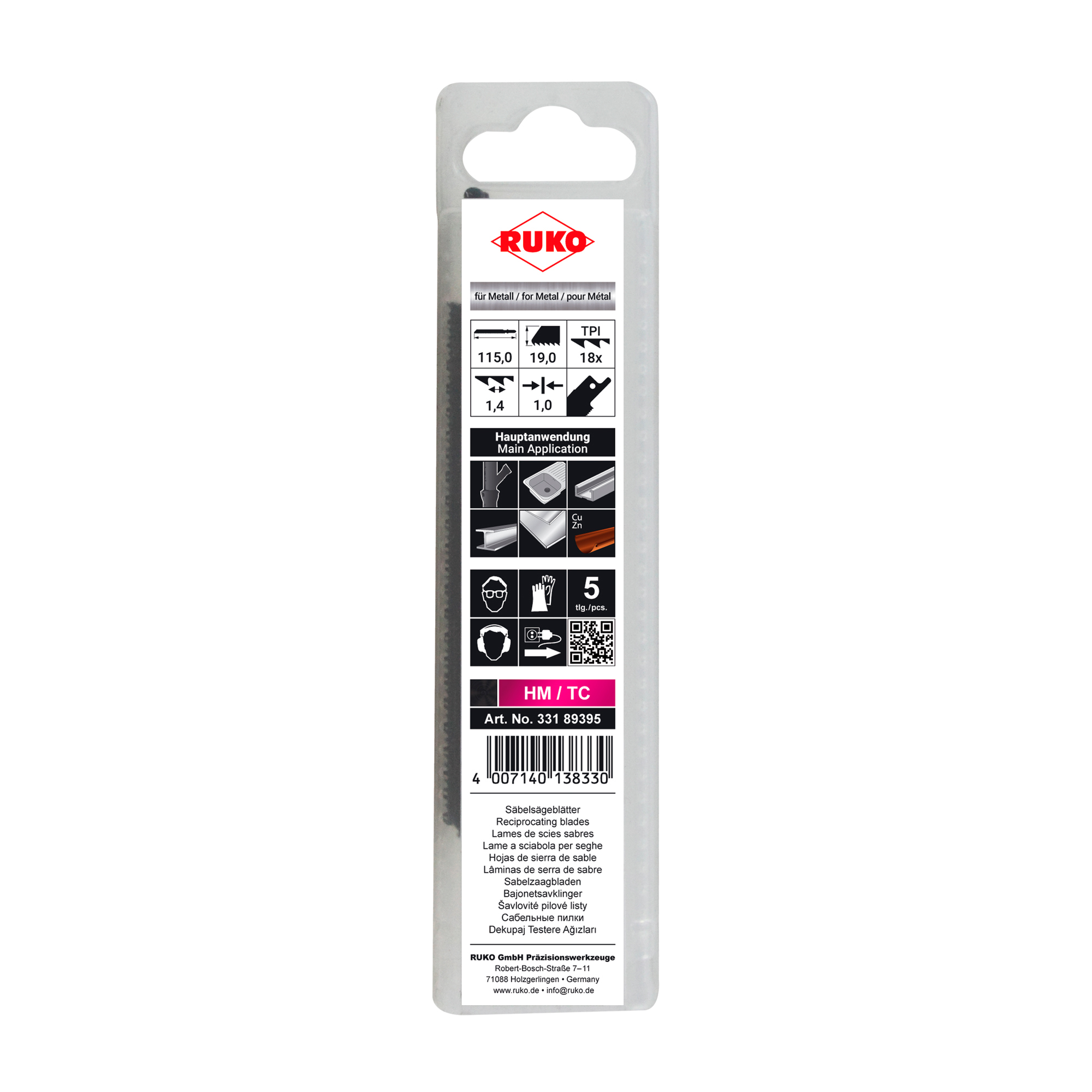 Полотно для сабельных пил 115мм HM 18Tpi S518EHM 5шт Ruko 33189395