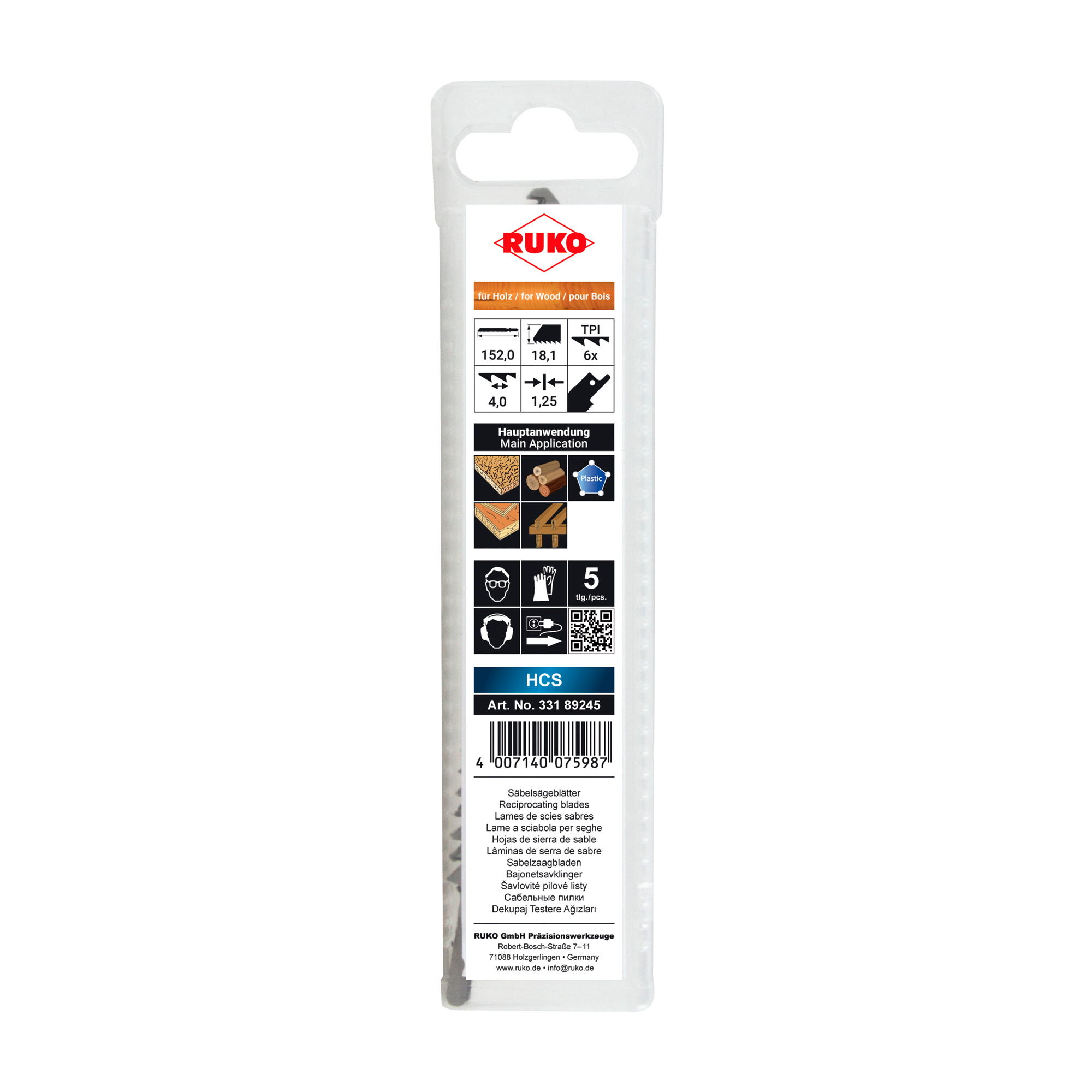 Полотно для сабельных пил 152мм HCS 6Tpi S644D 5шт Ruko 33189245