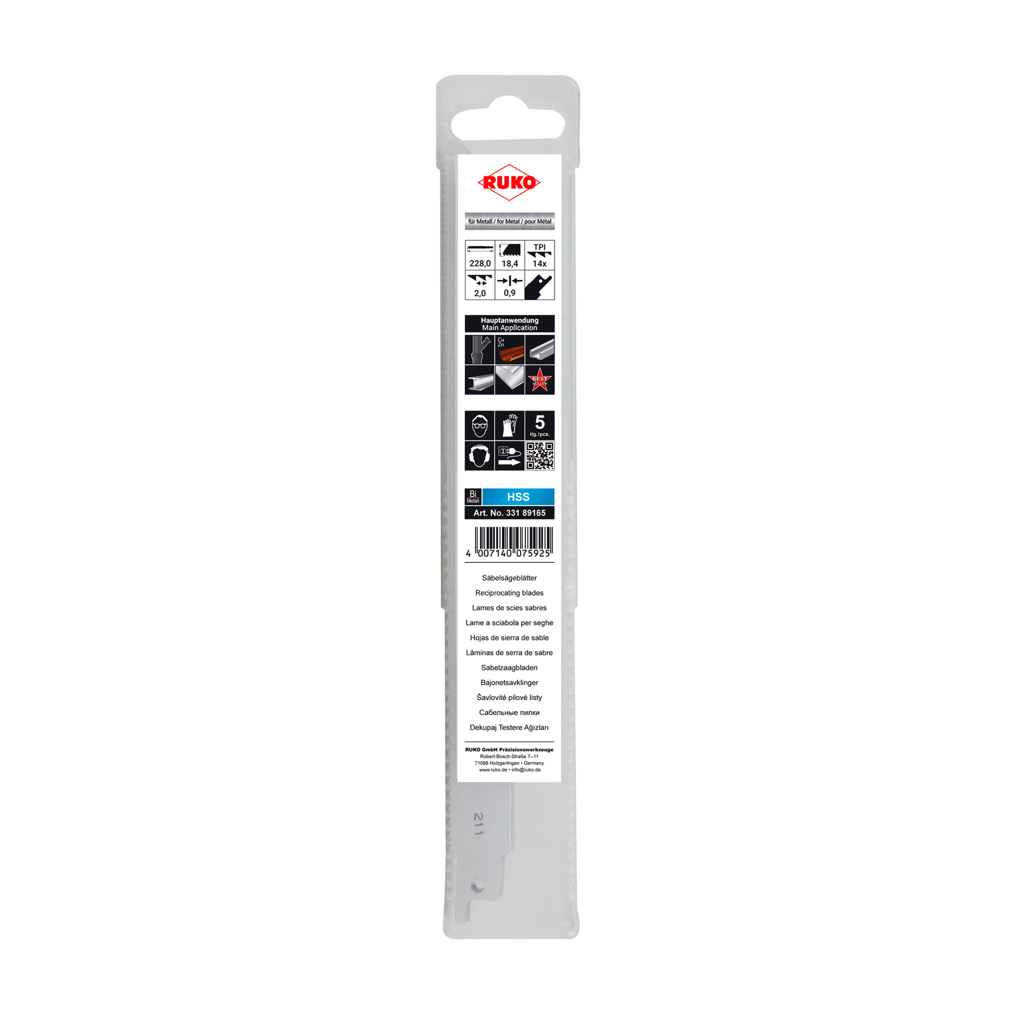 Полотно для сабельных пил 228мм BiMetall 14Tpi S1122BF 5шт Ruko 33189165