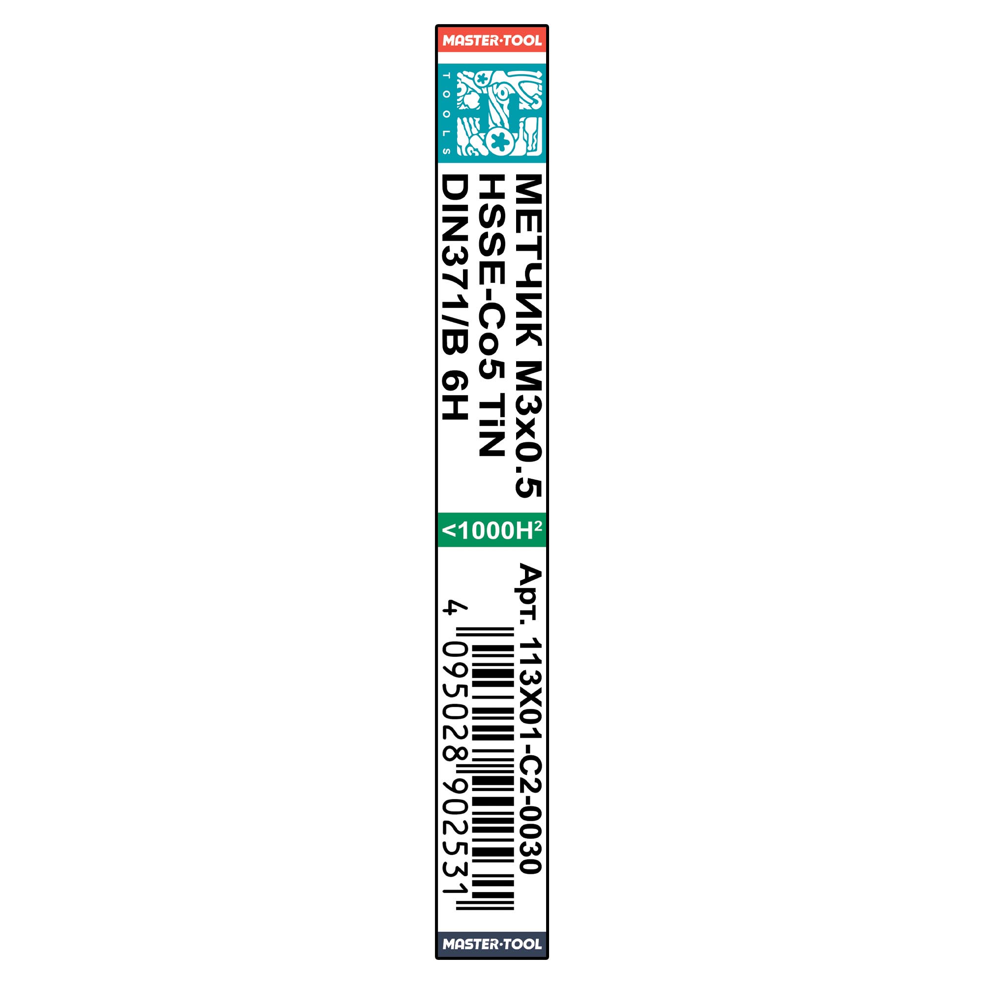 Метчик машинный H-Tools М3х0,5 DIN371 HSSE-TiN 6h B/4-5P 113X01-C2-0030