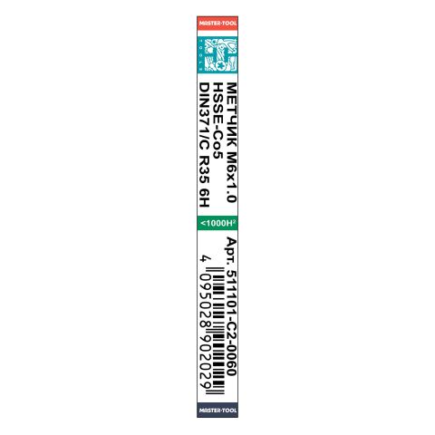 Метчик винтовой машинный H-Tools М6х1,0 DIN371 HSSE 6h C/2-3P R35 511101-C2-0060