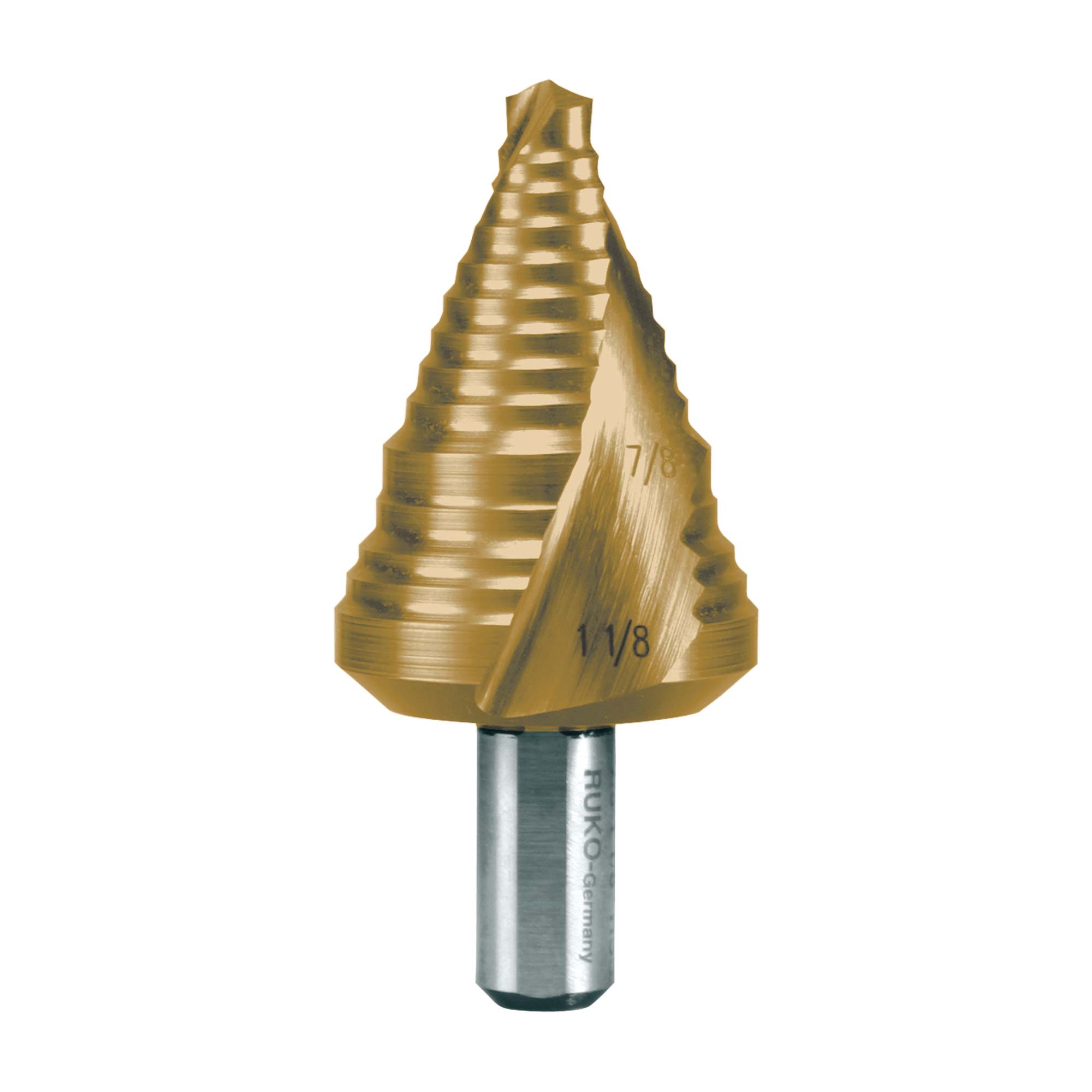 Сверло ступенчатое дюймовое Ruko 7/8-1,1/8" HSS-G TiN 2ступ. d=3/8" 101709T