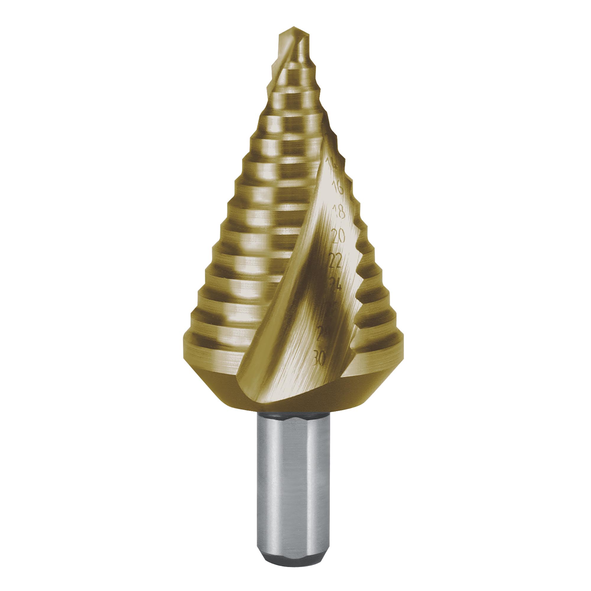 Сверло ступенчатое по металлу Ruko 4-30мм HSS-G TiN 14ступ. L=72мм d=10мм 101063T