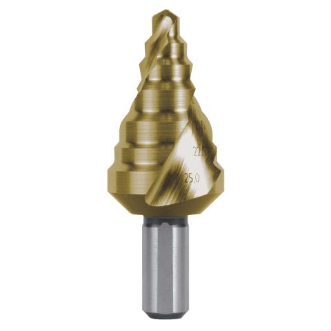 Сверло ступенчатое по металлу Ruko 6,0-25,0мм HSS-G TiN 7ступ. L=65мм d=10мм 101095T